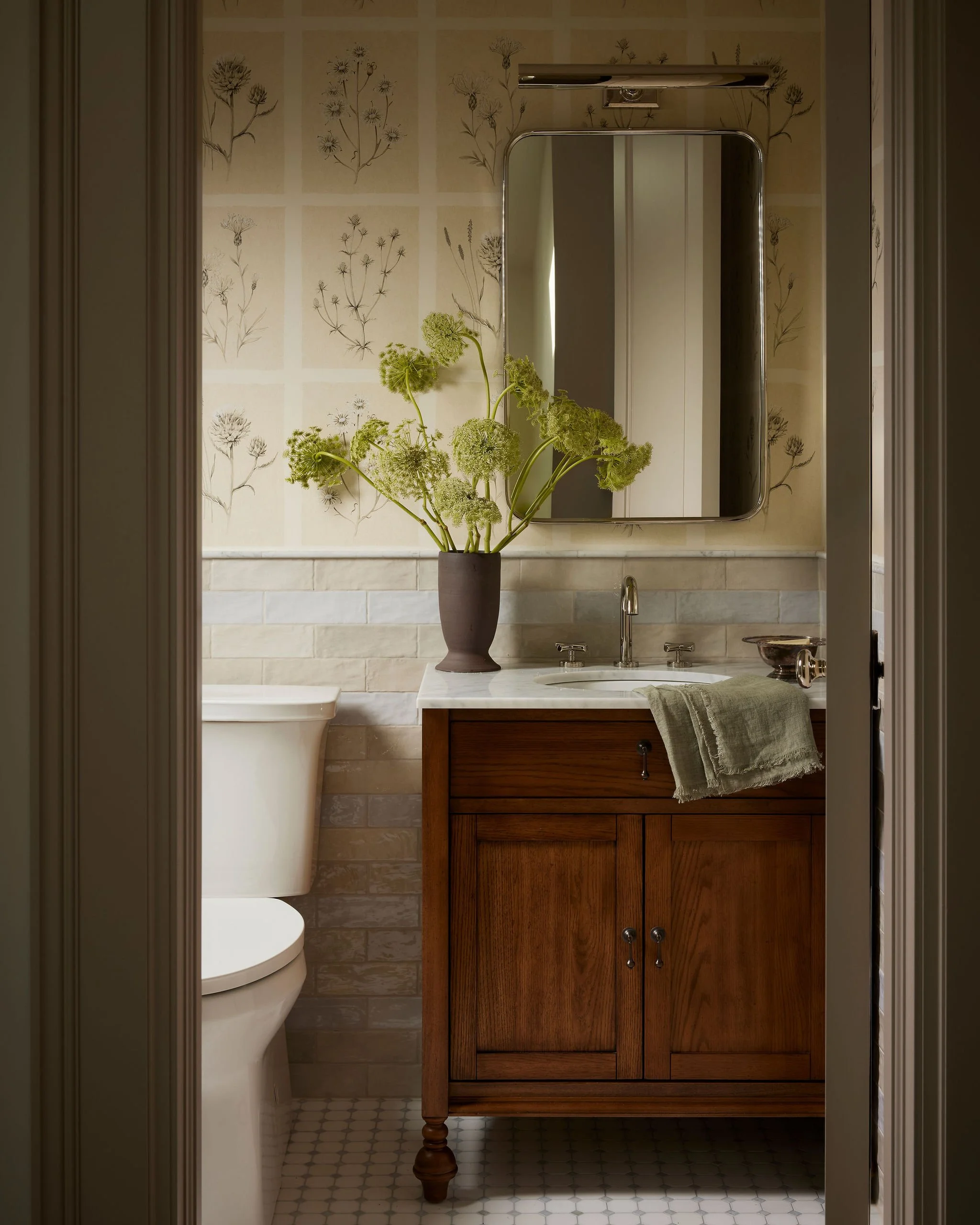 The surrounding neighbourhood’s distinctly English character strongly informed the design direction. Rather than leaning contemporary, the home embraces a more traditional, richly layered aesthetic with classic details, saturated colours, and thoughtful millwork. The result is a cohesive, timeless interior that feels both rooted in its historic context and perfectly suited to modern family life.